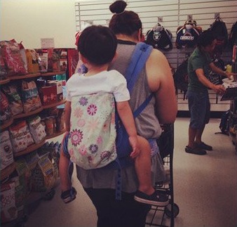 Hey you! I think you are a bit too old to be hitching a ride on somebody's back! Stand up on your own two legs and start exercising otherwise you will grow up to be a couch potato.