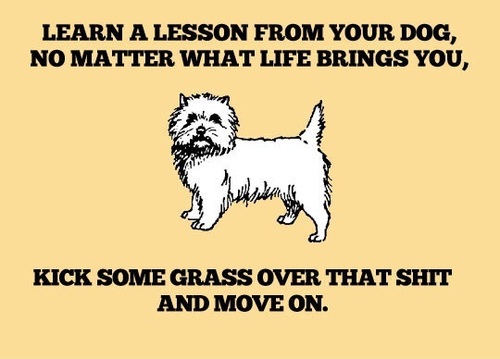 Learn a lesson from your dog, no matter what life brings you, kick some grass over that shit and move on.