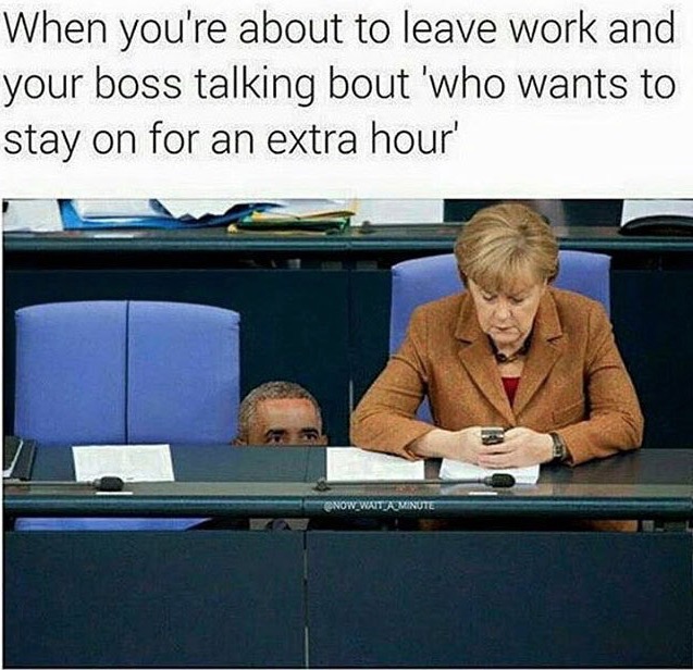 Leaving Work and Boss Wants You to Stay an Extra Hour - Obama Hiding from Merkel