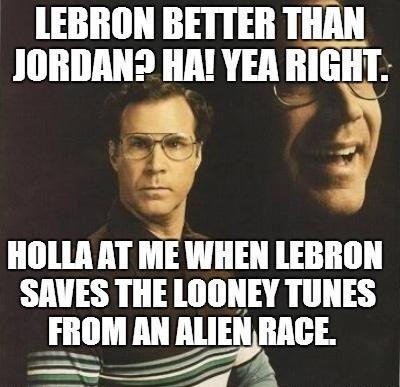 Lebron better than Jordan? Ha Yea right. Holla at me when lebron saves the looney tunes from an alien race.