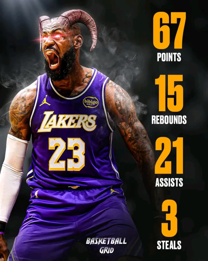 LeBron James GOES CRAZY with 67 PTS, 15 REB, 21 AST, 3 STL, 3 BLK over the Lakers three game win streak π₯π€― Pure dominance at 41 years old π€ GOAT π
