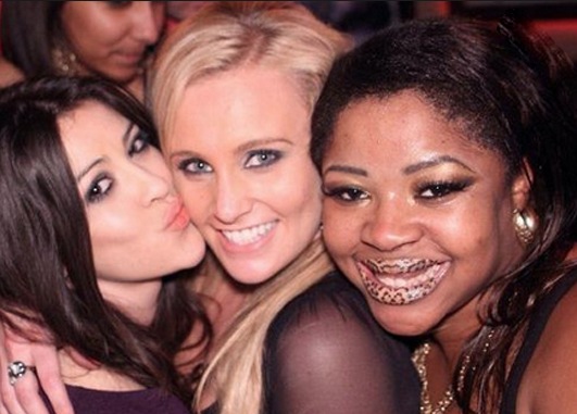 This girl really should consider a different method of applying lipstick. It looks like a slug died on her lip. Yucko! Next time how about just plain red?