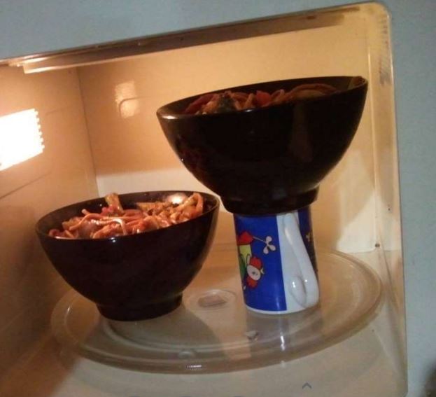 Life Hack: Two Bowls in Microwave