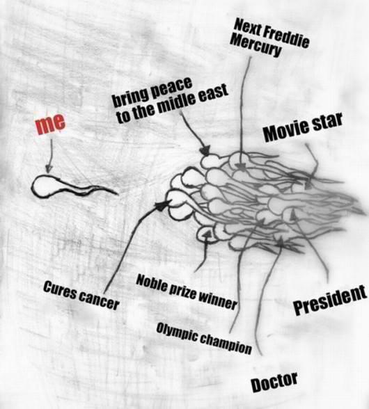 Each person is unique though and you being alive makes you stronger, faster and smarter than your other sperm siblings!