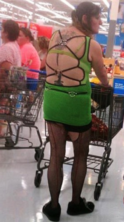 Somebody call the fashion police I think some kind of law was broken at Walmart. Maybe we could all team up and buy her some new clothes?