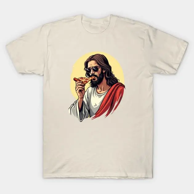 https://www.teepublic.com/t-shirt/74615947-cool-savior-eating-pizza-funny-religious-art?store_id=3777793