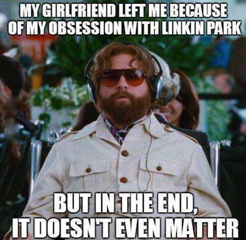 No wonder your girlfriend left you. Does anyone still listen to Linkin' Park?