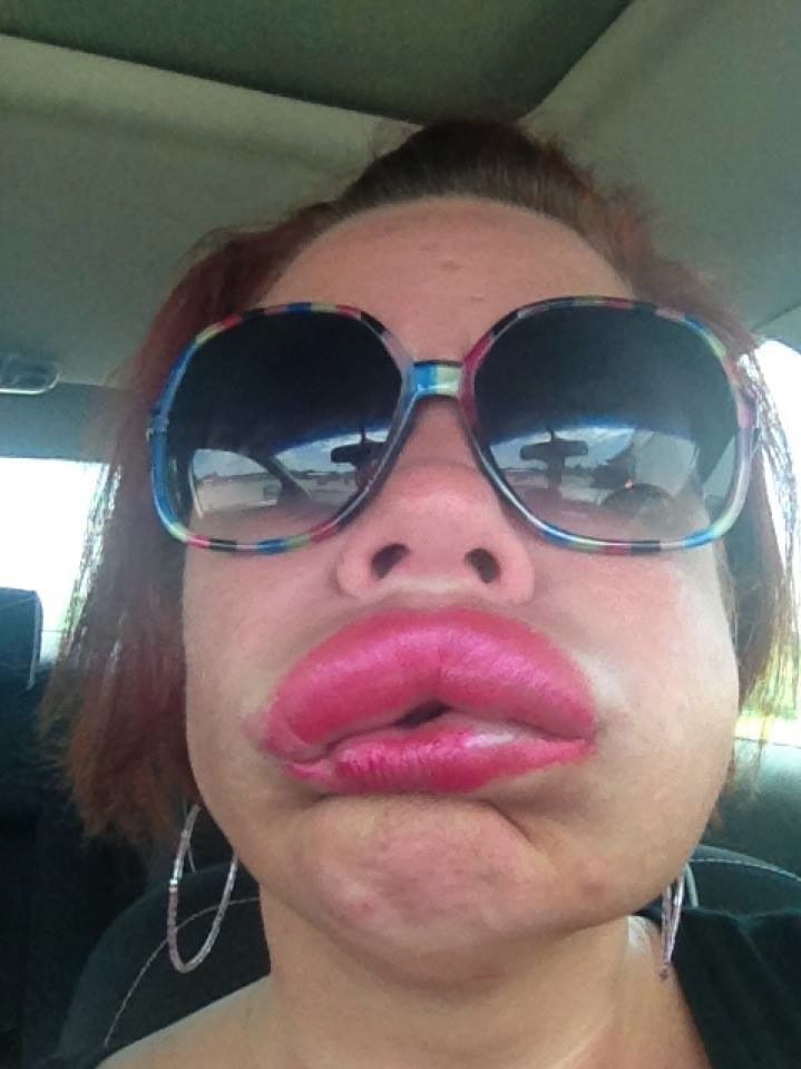 If ever your breakout in a severe rash from eating something that you are allergic to just apply copious amounts of makeup lipstick and don some giant sunglasses. Swelling problem solved.