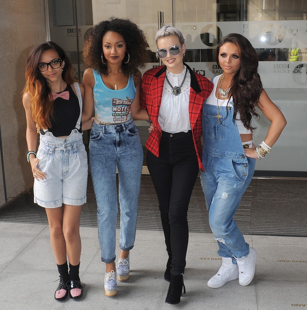 Little Mix stops to pose before heading into the BBC Radio One studios on Tuesday in London, England.