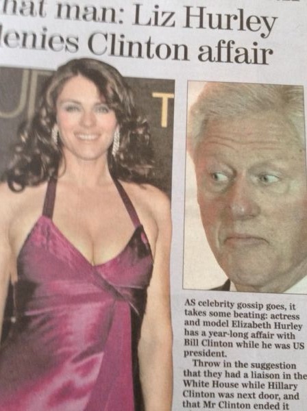 Liz Hurley Denies Bill Clinton Affair - Looks Like Bill Did It Eyes - News Fail