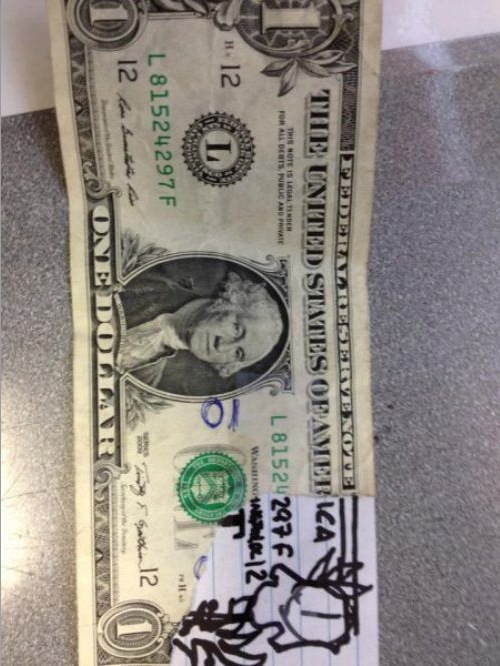 This one dollar bill should be able to pass as legal tender. I think somebody thought that they were Pablo Picasso or something.