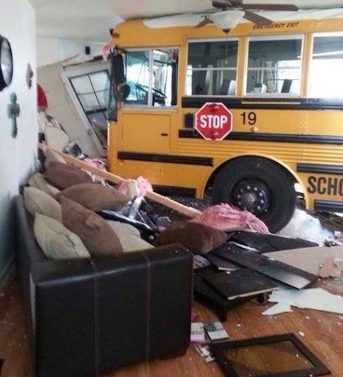 Looks Like the School Bus is Here... Bus Crashes Into Living Room