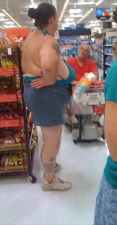 I think these tops are so loose fitting that nothing gets held up at all. It's like not wearing a top at all. that guy in the scooter better be careful.