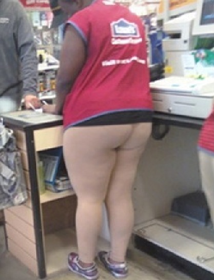 It looks like Lowes is moving into walmart territory. Even the cashier is wearing no pants these days. Just kidding! It's awful skin colored leggings...