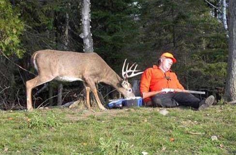 This hunter not only misses getting himself a deer, but he will also miss out on his lunch too. LOL