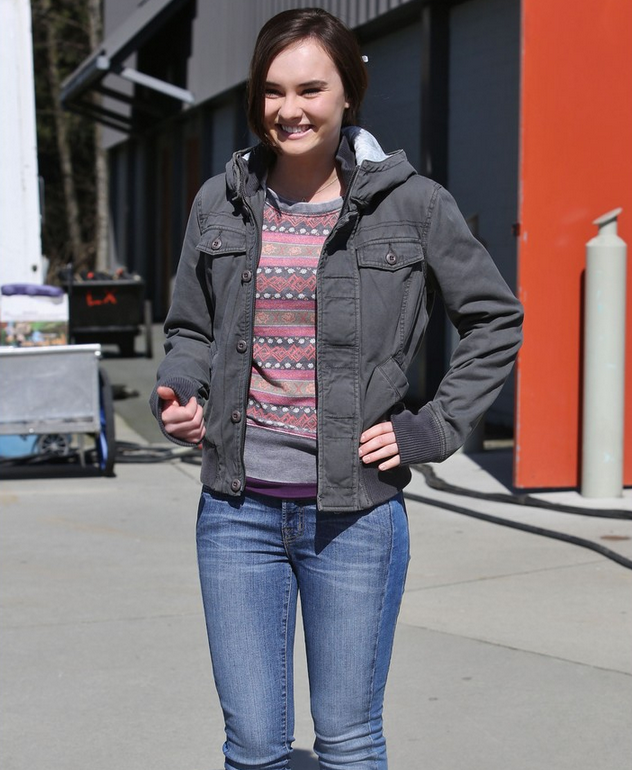 Madeline Carroll gives a thumbs up to the cameras while on the set of Blink in Vancouver, Canada on Monday afternoon.