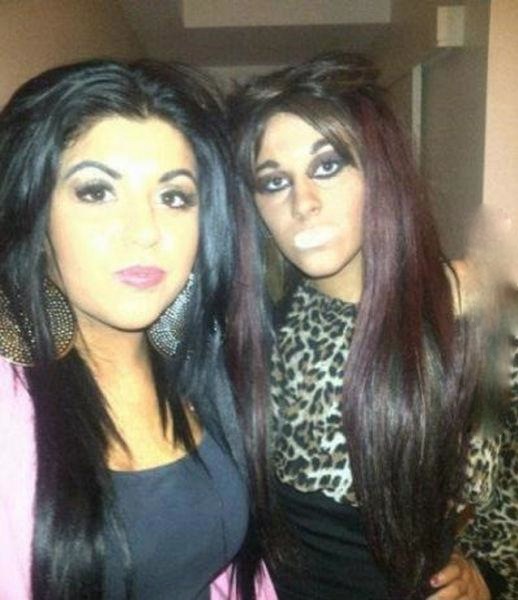 Great job on the makeup girl. You applied it so wrong it looks like you did it blindfolded. Next time look in the mirror when you are applying the eyeshadow