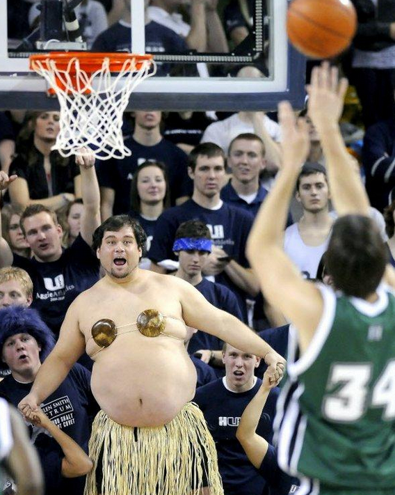 Theres another real fan of basketball, he will humiliate himself so the team that he is cheering for will win the game, because the other team will miss all the shots, they will be laughing so hard at him.