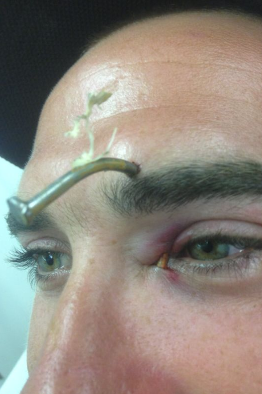 This is why you wear safety glasses when air nailing!!! SUPER LUCKY