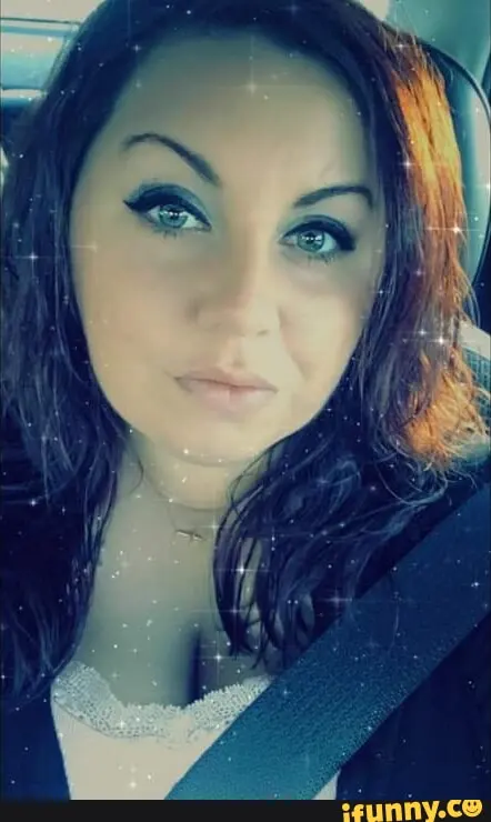 Mandy grins taking this picture leaving work after having her big breasts squeezed around Timmy's big dick in her black jacket and white tank top.
