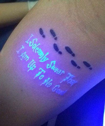 UV inks have been getting a lot of attention lately and even more so when this brilliant Harry Potter-themed ink was made viral. At first, it only appears to be a set of footprints akin to that found on the Marauders' Map (what Harry uses to get away from a lot of troubles) but when exposed to UV light, the words "I solemnly swear that I am up to no good" appears below.
