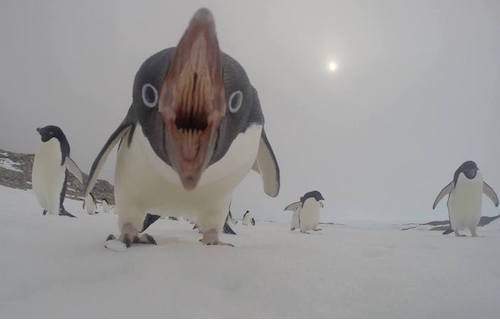 Yikes. Who said penguins are cute and loveable? This one looks downright scary. I think I might need some therapy to get over the fright. I guess he doesn't like his picture taken?