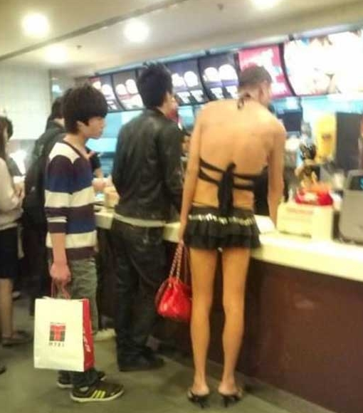 Walking in to a McDonald's I seen this guy dressed up as a woman asking if he can get BIG AND TASTY to go.