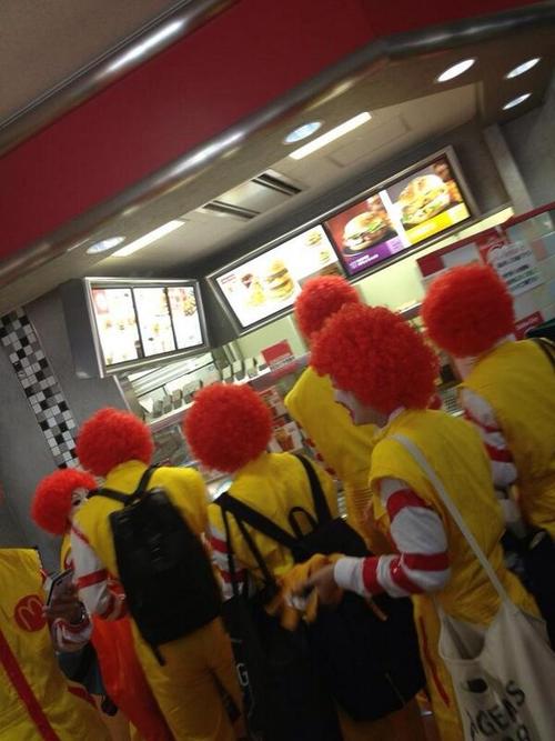 I've never seen such a huge crowd of Ronald McDonald's clumped together in a single group.