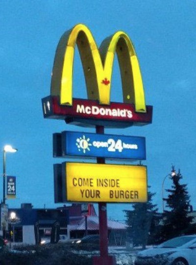 I'm sure they are not serving many people tonight. Instead of one billion served they will have one billion lawsuits. Come inside your burger... yuck!
