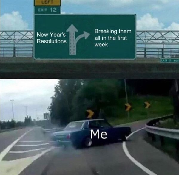 This is me keeping new year's resolutions. I'm breaking them all in the first week like a car wreck.