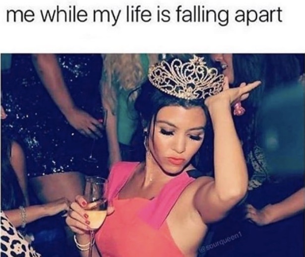 Me while my life is falling apart. Dancing, drinking, and wearing a tiara.
