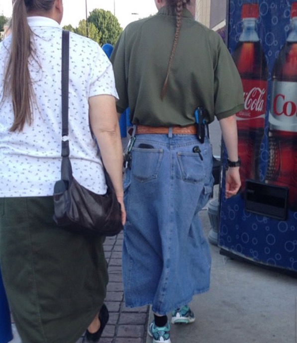 She looks like a ninja with that jean skirt and pony tail. Where is her samurai sword?