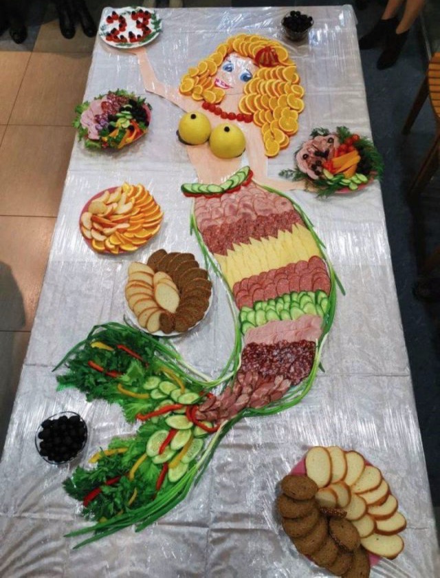This is one great charcuterie board. The mermaid looks delicious.