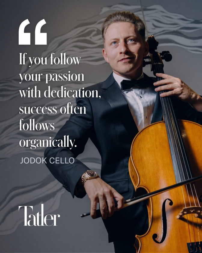 Meet ‘Jodok Cello’ from Swiss farm boy to social media phenomenon, bridging classical and contemporary worlds, proving dreams can come true with an authentic heart. Jodok’s story begins at an organic farm in Emmental, nestled in Switzerland’s serene countryside. Now, at the height of his career, he introduces classical music with contemporary pop, set against the breathtaking natural vistas of his homeland.\n\n“I want to show the beauty of our country,” Jodok explains, his vision crystallizing the marriage of music, mountains, and nature. “This concept has been incredibly successful over the past two years.”\n\n.\n\nทำความรู้จักกับ Jodok Cello นักเชลโลเท้าเปล่าจากฟาร์มสวิสกลายเป็นปรากฏการณ์โซเชียลมีเดีย ด้วยการผสานความคลาสสิกเข้ากับความร่วมสมัย และพิสูจน์ว่าความฝันสามารถเป็นจริงได้ด้วยหัวใจที่แท้จริง การเดินทางของยอโดกเริ่มต้นจากฟาร์มออร์แกนิกในเอมเมนทัล ภูมิภาคอันเงียบสงบของสวิตเซอร์แลนด์ ตอนนี้ในวัย 37 ปี เขาเดินทางไปทั่วโลกพร้อมคอนเซ็ปต์ที่เรียบง่ายแต่ทรงพลัง: การหลอมรวมดนตรีคลาสสิกเข้ากับเพลงป๊อปสมัยนิยม ท่ามกลางทิวทัศน์ธรรมชาติอันงดงามของบ้านเกิด\n\n“ผมต้องการนำเสนอความงามของประเทศเรา” ยอโดกอธิบายถึงแนวคิดที่ผสานดนตรี ภูเขา และธรรมชาติเข้าด้วยกัน “แนวคิดนี้ประสบความสำเร็จอย่างล้นหลามในช่วงสองปีที่ผ่านมา”\n\n#TatlerPowerandPurpose #Tatler #PowerandPurpose #TatlerThailand