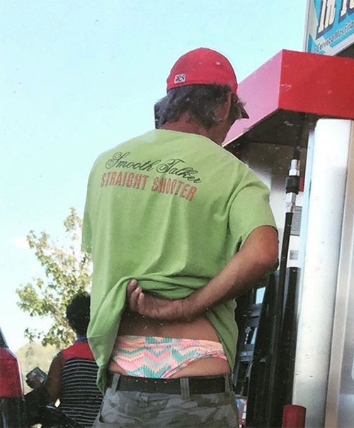 You know you are just showing off when you've got your multi colored bikini bottoms sticking out behind your camo pants. It makes them really pop! Some smooth talker straight shooter...