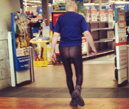 I would not want to see this guy from the front! What the heck? Who said men are allowed to wear women's pantyhose? Somebody get this man some pants!