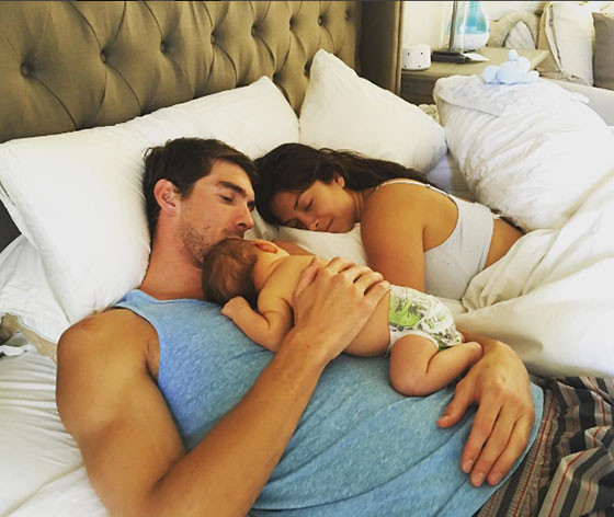 The Olympic swimmer posted this picture with his family and the spotlight is on his newborn son Boomer Robert Phelps.
