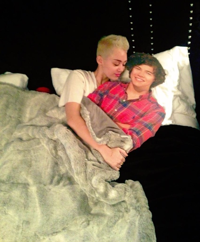 Miley Cyrus caused excitement when she posted a Twitter photo of herself in bed with a rigid cardboard Harry Styles. It looks like she is a big One Direction fan! @mileycyrus @Harry_Styles