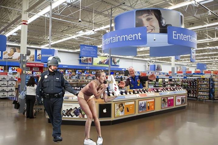 Wow this is unreal. Getting Miley to sing for us for free at Walmart! Who can beat that? Looks like she's getting wild again and a police officer is going to arrest her for indecency!