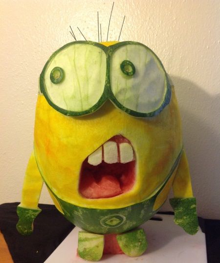 Check out this minion! Looks like an ordinarily sculpted minion, right? Well, it was made out of a watermelon! It's more impressive now, right?