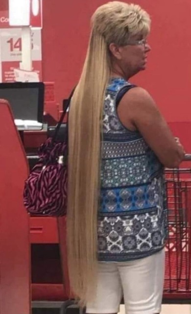 Mom decided to grow a mullet. I think she's broken some kind of record here.