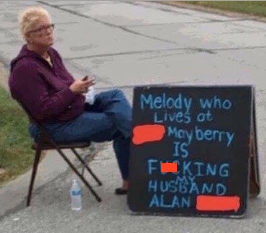 Mom is mad at Melody. Apparently she and dad had an affair and she wants to advertise it to the whole neighborhood with this nice sign.