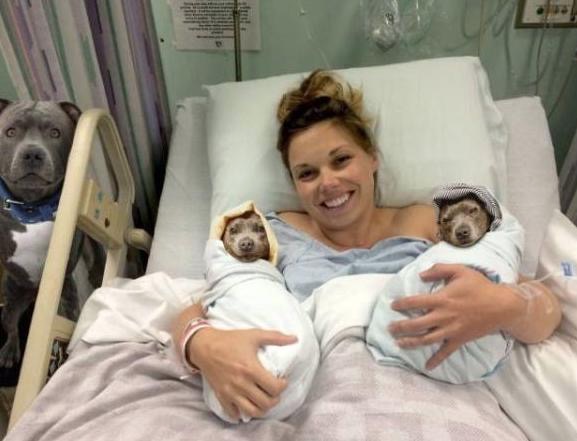 Look at the proud new mom and dad. Those twins look a lot like dad. I guess that's the power of genes.