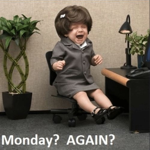 This is how my wife feels at work. She's a little taller and wears a lot more makeup. Other than that she's pretty much the same person.
