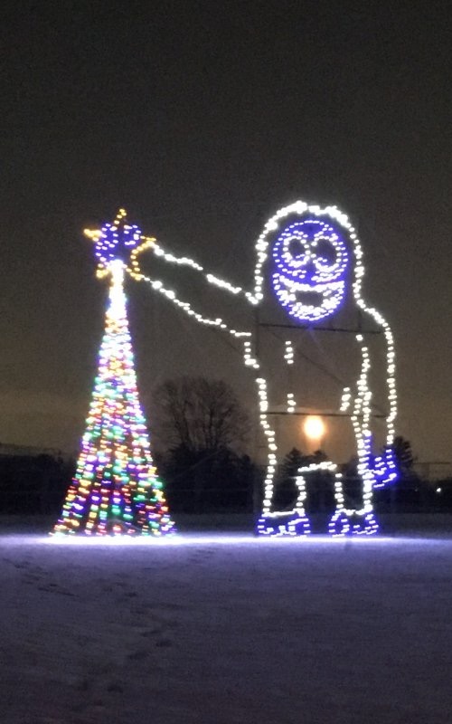 How festive! Somebody did a lot of work putting up those lights. I can't imagine how long it took. It takes me forever to put up one strand.