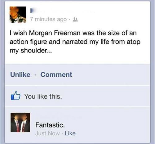 So much color would be added to your life's most special moments if you had the ability to just pull out Morgan Freeman and narrate your life's events for you with his smooth, low-key, sultry voice.