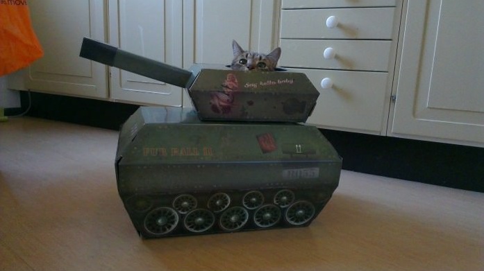 Funny cat in tank. This cracked me up. This kitty looks dangerous