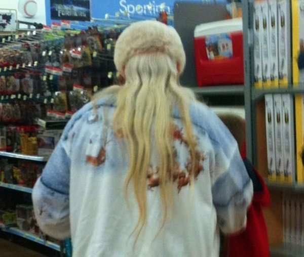 This is the mother of all mullets at Walmart. Grandma really outdid herself.