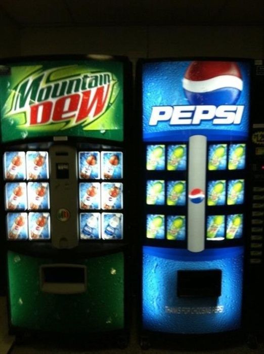 Dude you only had one job and you screwed it up you should put pepsy in a pepsi machine and Mountain Dew In a Mountain Dew machine