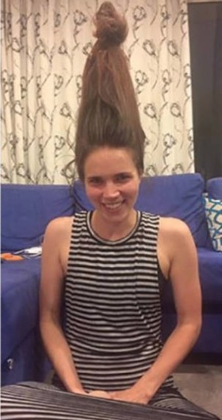 She's applied so much mousse I think her head might never go back to original shape. She will forever by a conehead.